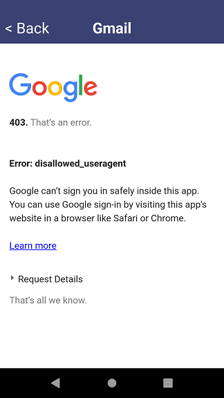 我在某个地方读到链接只适用于应用程序浏览器,我也尝试过,但是Google也不允许这样做。请为该错误附加图像,也请查看: