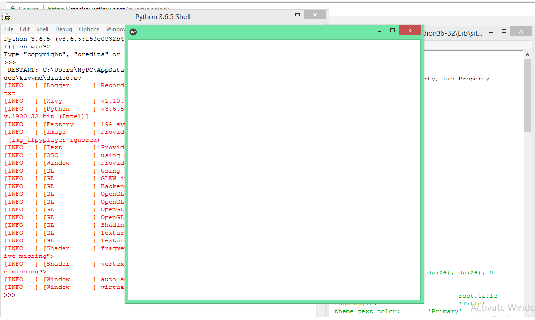 不是所有的.py程序在.\Python36-32\Lib\site-packages\kivymd中都会显示一个窗口。您可以运行python accordion.py,它将显示手风琴小部件的窗口。