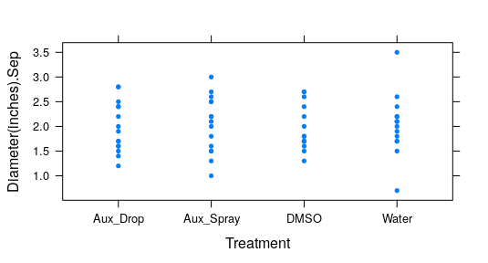 xyplot(`Diameter(inches).Sep` ~ Treatment , merged.Sep.Dec.Mar, pch= 20)生成绘图的: