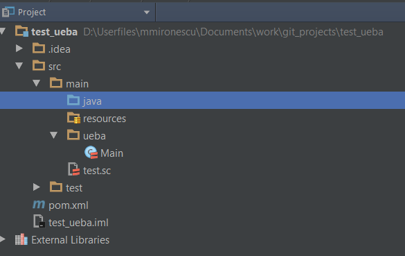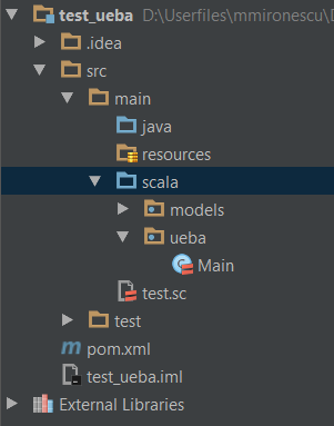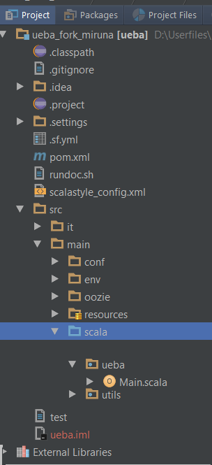 spark-submit --class=ueba.Main --jars $JARS1,$JARS2 target/UEBA-1.0-SNAPSHOT.jar "hdfs://some_location:9000/seco"下面是我当前项目结构的快照。