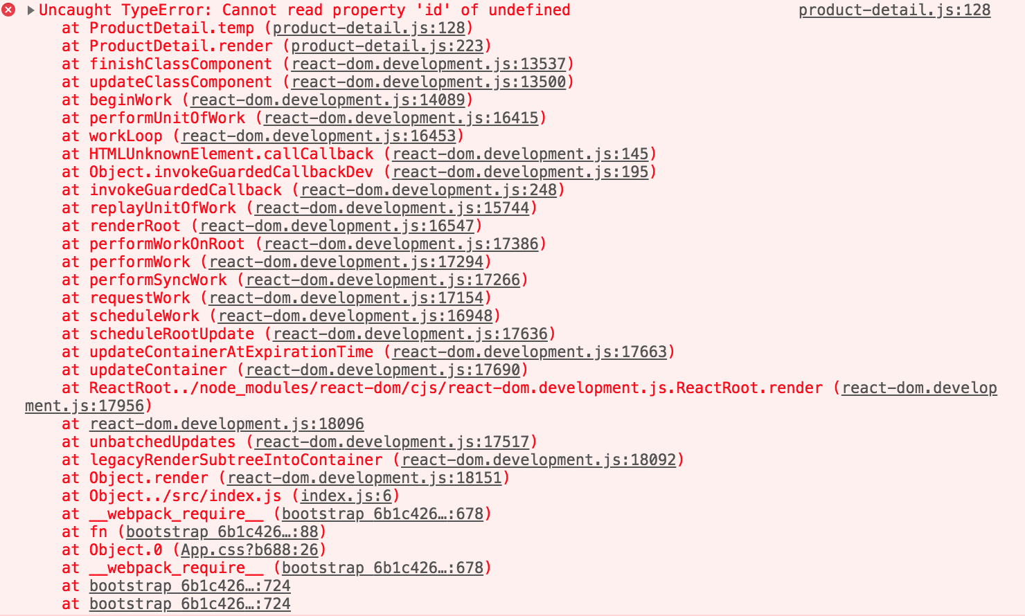 cannot read property of undefined意味着您正在寻找ID的对象不在那里。当解释器不理解或找不到您预期存在的对象时,会抛出未定义的对象。