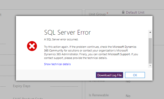 Server错误 发生了Server错误。 再试一次这个动作。如果问题继续,请查看Microsoft Dynamics365社区以获得解决方案,或与组织的Microsoft Dynamics365管理员联系。最后,您可以与Microsoft支持部门联系。如果您联系支持,请提供技术细节。