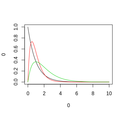 curve(dgamma(x, shape = k[i], scale = theta[i]), from = 0, to = 10, col = i, add = TRUE)