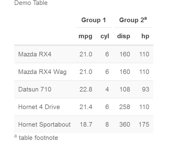 add_header_above(c(" ", "Group 1" = 2, "Group 2[note]" = 2)) %>%