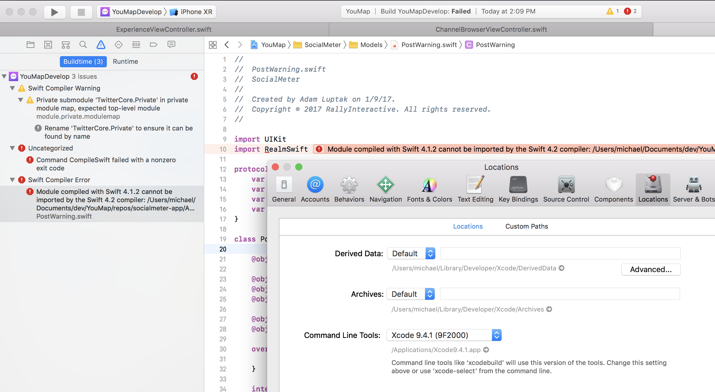 对我来说,这表明我的Swift版本(4.1.2)设置正确,Xcode仍然试图使用Swift (4.2)的错误版本。