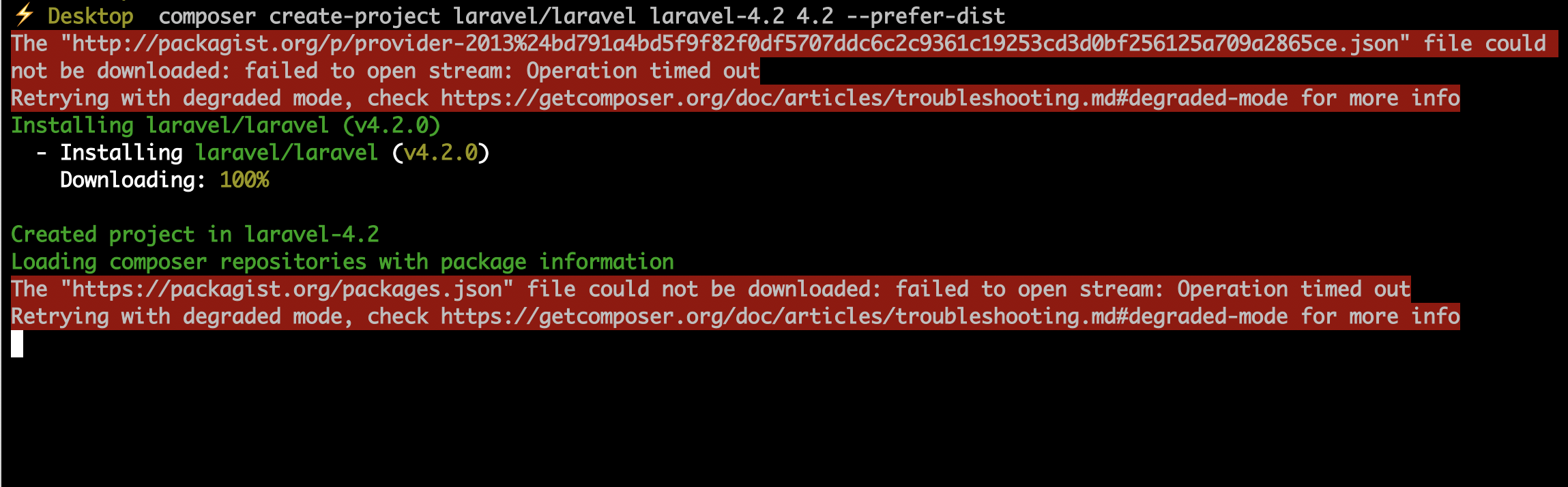 composer create-project laravel/laravel laravel-4.2 4.2 --prefer-dist我一直在