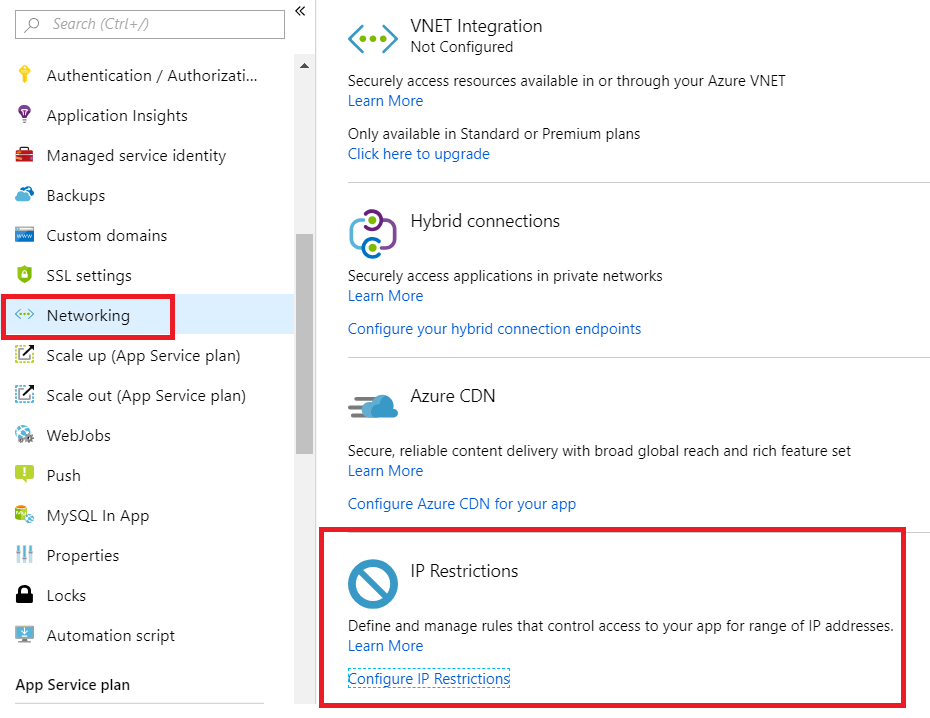 在这里阅读更多关于它的Azure App Service静态IP限制