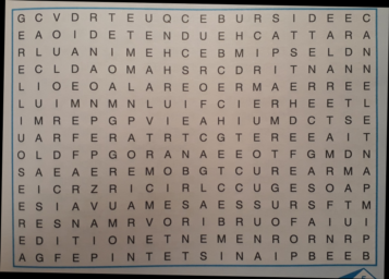 如果图像只是旋转的话。很少或没有透视),你可以用FFT来找到旋转的角度。良好的、规则的字符网格将在转换过程中生成一组清晰的线条。它应该非常健壮。这是对整个图像做FFT,但你可以先缩小它,如果你想要更多的速度。