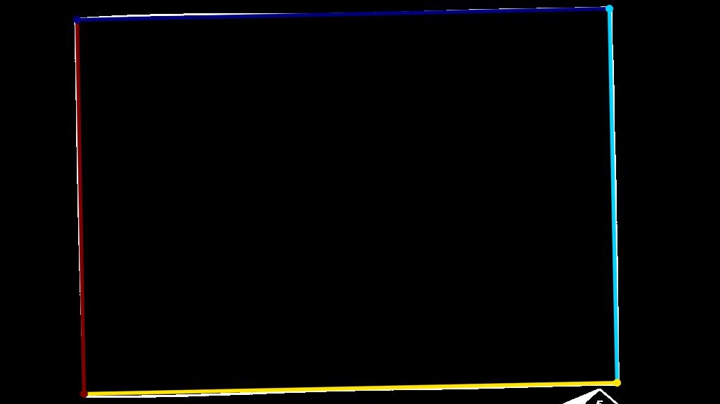 转换到HSV,然后开始在每个角落和前进到中间的图片寻找最近的像素到每个角落是有点饱和,并有一个色调与你的蓝色周围的矩形。这将给你红色标记的4分: