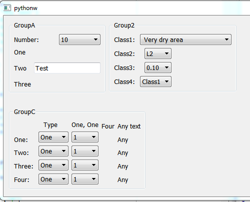 我已经创建了一个内容为3 QGroupbox的小部件,我正在尝试将它们分别放置并与QGridLayout对齐。QGroupboxs的奇怪行为提出了这个问题。
