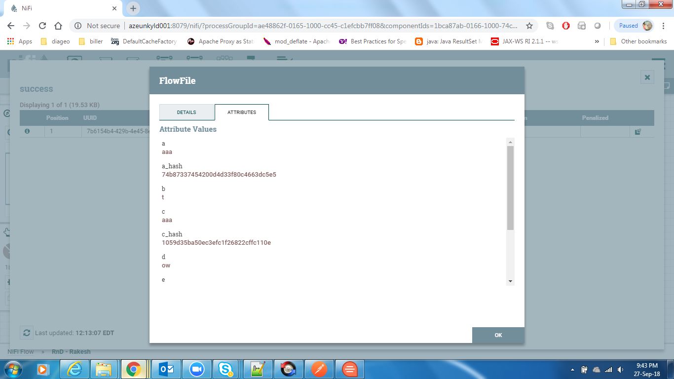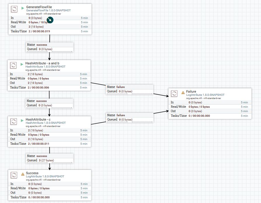 <?xml version="1.0" encoding="UTF-8" standalone="yes"?><template encoding-version="1.2"><description></description><groupId>ae48862f-0165-1000-cc45-c1efcbb7ff08</groupId><name>dnu-hash-attribute</name><snippet><connections><id>91ef00b9-6cd0-3fed-0000-000000000000</id><parentGroupId>5842a0b1-f01b-3160-0000-000000000000</parentGroupId><backPressureDataSizeThreshold>1 GB</backPressureDataSizeThreshold><backPressureObjectThreshold>10000</backPressureObjectThreshold><destination><groupId>5842a0b1-f01b-3160-0000-000000000000</groupId><id>5cf06895-44e9-3f64-0000-000000000000</id><type>PROCESSOR</type></destination><flowFileExpiration>0 sec</flowFileExpiration><labelIndex>1</labelIndex><name></name><selectedRelationships>success</selectedRelationships><source><groupId>5842a0b1-f01b-3160-0000-000000000000</groupId><id>9b4dd5b8-8718-3f54-0000-000000000000</id><type>PROCESSOR</type></source><zIndex>0</zIndex></connections><connections><id>2fbfd09e-72e8-3c46-0000-000000000000</id><parentGroupId>5842a0b1-f01b-3160-0000-000000000000</parentGroupId><backPressureDataSizeThreshold>1 GB</backPressureDataSizeThreshold><backPressureObjectThreshold>10000</backPressureObjectThreshold><destination><groupId>5842a0b1-f01b-3160-0000-000000000000</groupId><id>ab89e6d1-f08e-32be-0000-000000000000</id><type>PROCESSOR</type></destination><flowFileExpiration>0 sec</flowFileExpiration><labelIndex>1</labelIndex><name></name><selectedRelationships>success</selectedRelationships><source><groupId>5842a0b1-f01b-3160-0000-000000000000</groupId><id>5cf06895-44e9-3f64-0000-000000000000</id><type>PROCESSOR</type></source><zIndex>0</zIndex></connections><connections><id>4e1f1096-d302-35f8-0000-000000000000</id><parentGroupId>5842a0b1-f01b-3160-0000-000000000000</parentGroupId><backPressureDataSizeThreshold>1 GB</backPressureDataSizeThreshold><backPressureObjectThreshold>10000</backPressureObjectThreshold><destination><groupId>5842a0b1-f01b-3160-0000-000000000000</groupId><id>9b4dd5b8-8718-3f54-0000-000000000000</id><type>PROCESSOR</type></destination><flowFileExpiration>0 sec</flowFileExpiration><labelIndex>1</labelIndex><name></name><selectedRelationships>success</selectedRelationships><source><groupId>5842a0b1-f01b-3160-0000-000000000000</groupId><id>509810d8-4798-30e5-0000-000000000000</id><type>PROCESSOR</type></source><zIndex>0</zIndex></connections><processors><id>9b4dd5b8-8718-3f54-0000-000000000000</id><parentGroupId>5842a0b1-f01b-3160-0000-000000000000</parentGroupId><position><x>89.14968895009349</x><y>271.1685572155761</y></position><bundle><artifact>nifi-standard-nar</artifact><group>org.apache.nifi</group><version>1.6.0</version></bundle><config><bulletinLevel>WARN</bulletinLevel><comments></comments><concurrentlySchedulableTaskCount>1</concurrentlySchedulableTaskCount><descriptors><entry><key>Hash Value Attribute Key</key><value><name>Hash Value Attribute Key</name></value></entry><entry><key>a</key><value><name>a</name></value></entry></descriptors><executionNode>ALL</executionNode><lossTolerant>false</lossTolerant><penaltyDuration>30 sec</penaltyDuration><properties><entry><key>Hash Value Attribute Key</key><value>a_hash</value></entry><entry><key>a</key><value>(?s)(^.*$)</value></entry></properties><runDurationMillis>0</runDurationMillis><schedulingPeriod>0 sec</schedulingPeriod><schedulingStrategy>TIMER_DRIVEN</schedulingStrategy><yieldDuration>1 sec</yieldDuration></config><name>HashAttribute</name><relationships><autoTerminate>true</autoTerminate><name>failure</name></relationships><relationships><autoTerminate>false</autoTerminate><name>success</name></relationships><state>STOPPED</state><style/><type>org.apache.nifi.processors.standard.HashAttribute</type></processors><processors><id>ab89e6d1-f08e-32be-0000-000000000000</id><parentGroupId>5842a0b1-f01b-3160-0000-000000000000</parentGroupId><position><x>634.6037608433834</x><y>574.9859619140625</y></position><bundle><artifact>nifi-standard-nar</artifact><group>org.apache.nifi</group><version>1.6.0</version></bundle><config><bulletinLevel>WARN</bulletinLevel><comments></comments><concurrentlySchedulableTaskCount>1</concurrentlySchedulableTaskCount><descriptors><entry><key>Log Level</key><value><name>Log Level</name></value></entry><entry><key>Log Payload</key><value><name>Log Payload</name></value></entry><entry><key>Attributes to Log</key><value><name>Attributes to Log</name></value></entry><entry><key>attributes-to-log-regex</key><value><name>attributes-to-log-regex</name></value></entry><entry><key>Attributes to Ignore</key><value><name>Attributes to Ignore</name></value></entry><entry><key>attributes-to-ignore-regex</key><value><name>attributes-to-ignore-regex</name></value></entry><entry><key>Log prefix</key><value><name>Log prefix</name></value></entry><entry><key>character-set</key><value><name>character-set</name></value></entry></descriptors><executionNode>ALL</executionNode><lossTolerant>false</lossTolerant><penaltyDuration>30 sec</penaltyDuration><properties><entry><key>Log Level</key><value>info</value></entry><entry><key>Log Payload</key><value>false</value></entry><entry><key>Attributes to Log</key></entry><entry><key>attributes-to-log-regex</key><value>.*</value></entry><entry><key>Attributes to Ignore</key></entry><entry><key>attributes-to-ignore-regex</key></entry><entry><key>Log prefix</key></entry><entry><key>character-set</key><value>UTF-8</value></entry></properties><runDurationMillis>0</runDurationMillis><schedulingPeriod>0 sec</schedulingPeriod><schedulingStrategy>TIMER_DRIVEN</schedulingStrategy><yieldDuration>1 sec</yieldDuration></config><name>LogAttribute</name><relationships><autoTerminate>true</autoTerminate><name>success</name></relationships><state>DISABLED</state><style/><type>org.apache.nifi.processors.standard.LogAttribute</type></processors><processors><id>509810d8-4798-30e5-0000-000000000000</id><parentGroupId>5842a0b1-f01b-3160-0000-000000000000</parentGroupId><position><x>492.20976365100057</x><y>0.0</y></position><bundle