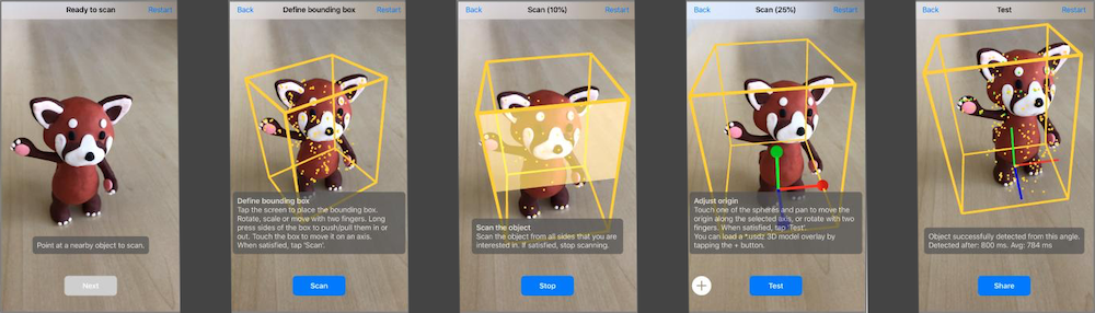 ARKit应用程序允许我们创建一个ARReferenceObject,并且使用它,我们可以可靠地识别真实世界对象的位置和方向。此外,我们还可以保存完成的.arobject文件。