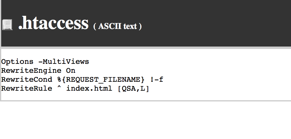 RewriteRule ^ index.html [QSA,L]现在应该可以用了。
