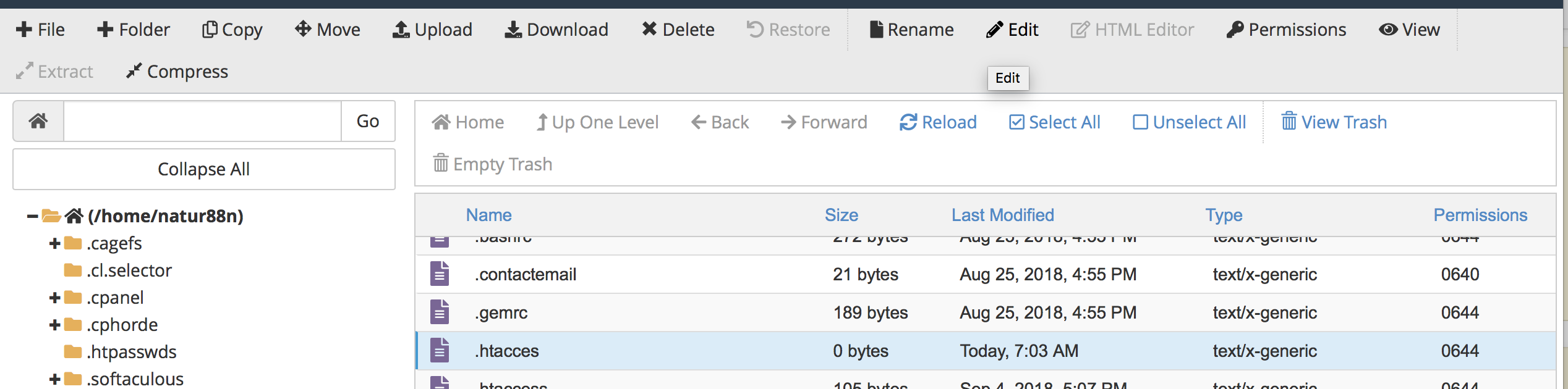 单击.htacess文件,然后选择“编辑”来编辑
