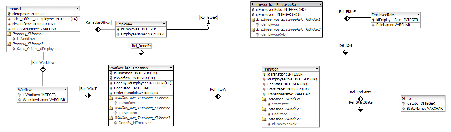 - A workflow is linked since many workflows could exist for different proposals.- Linked to State twice. The start state and the end state.