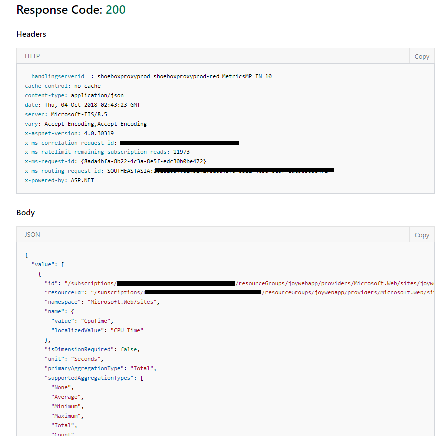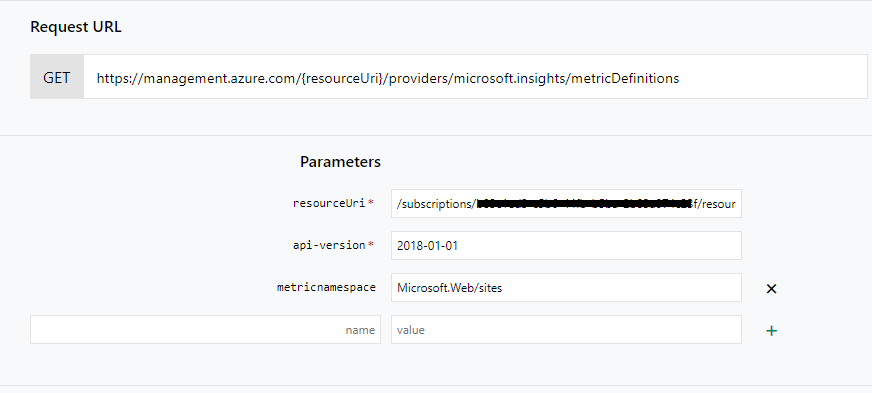 获取https://management.azure.com/{resourceUri}/providers/microsoft.insights/metricDefinitions?api-version=2018-01-01