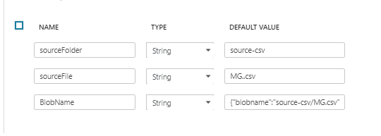 有任何方法让ADF V2上的复制活动由源文件名是变量的事件触发吗?我知道您应该在管道参数中为"sourceFile“定义默认值(如下面所示)。但是,我希望没有默认值,并让任何带有任何标题的文件触发管道。按照顺序,将在运行时检查文件名。