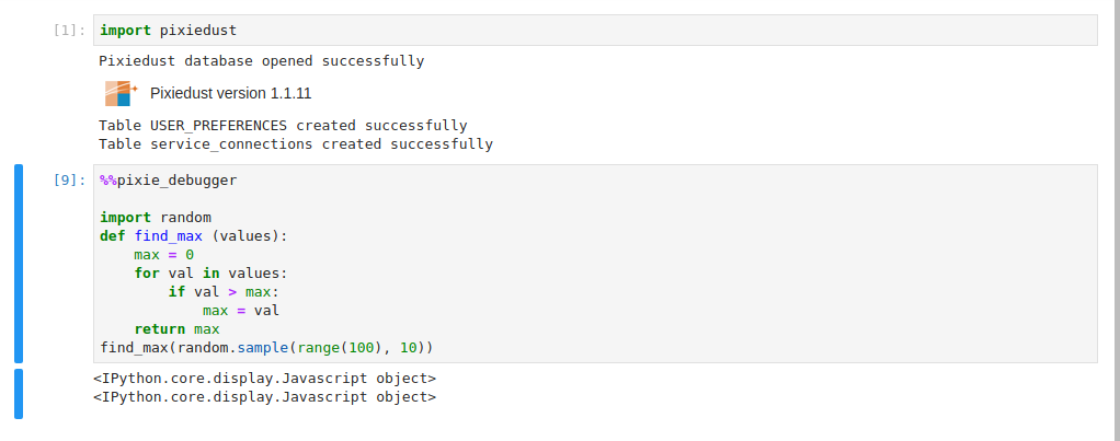 PixieDebugger是由PixieDust团队开发的,它声称它是第一个只适用于朱庇特笔记本的可视化调试器。注意到它还没有与JupyterLab一起工作,但是开发人员可能很快就会修复这个问题。