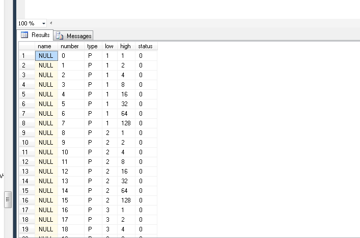 我和Dan都提到了一张理货表。在最简单的情况下(让我们称之为Numbers),它只包含一个列(让我们称它为number)。该表的每一行包含一个不同的整数值。在这种情况下,将使用来自无文档表master..spt_values的行子集。