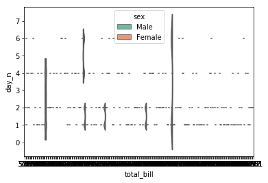 ax = sns.violinplot(y="day_n", x="total_bill", hue="sex",