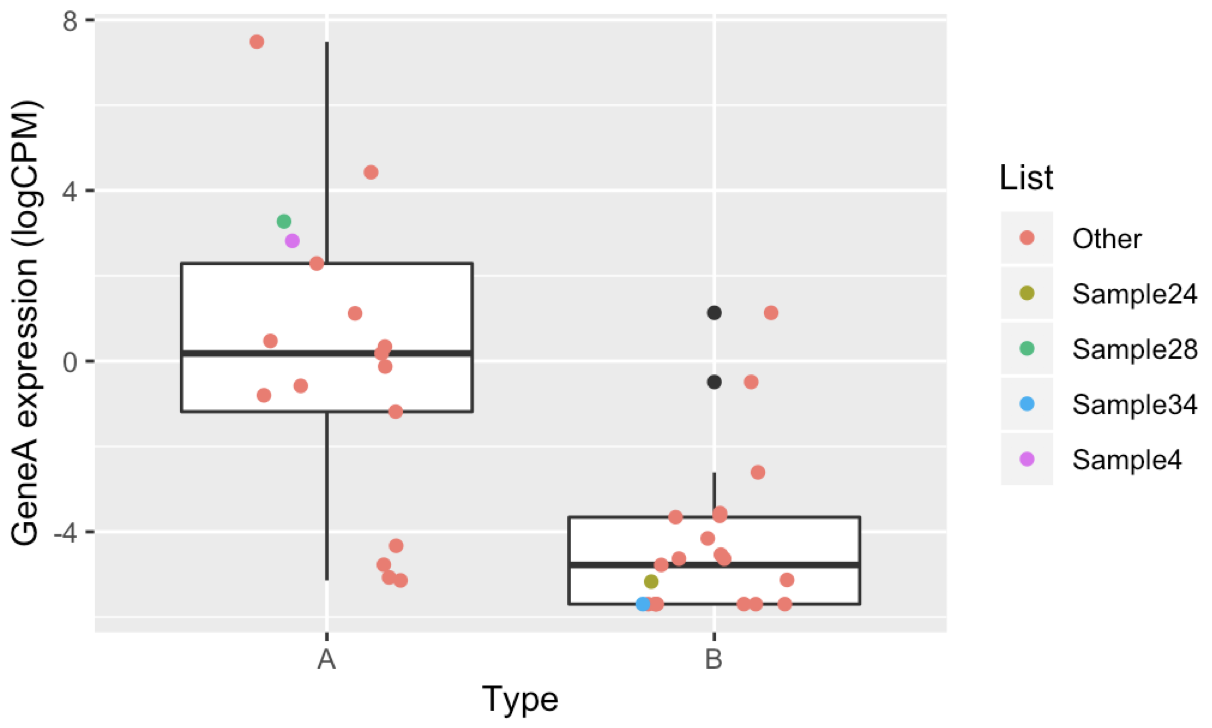 labs(y = "GeneA expression (logCPM)")