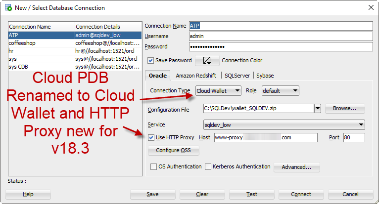 正如您在屏幕截图中所看到的,对于18.3版本,连接类型已被重命名为“Cloud”,并且我们添加了对定义连接的HTTP代理的支持。