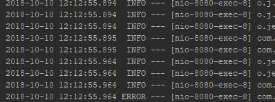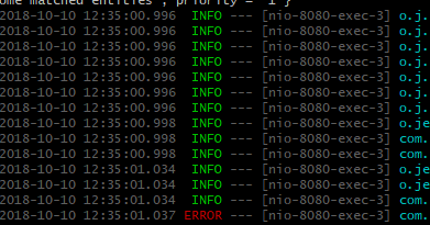 下面是相同的控制台输出,但GrepConsole配置为以绿色呈现包含INFO的行,以红色呈现包含ERROR的行: