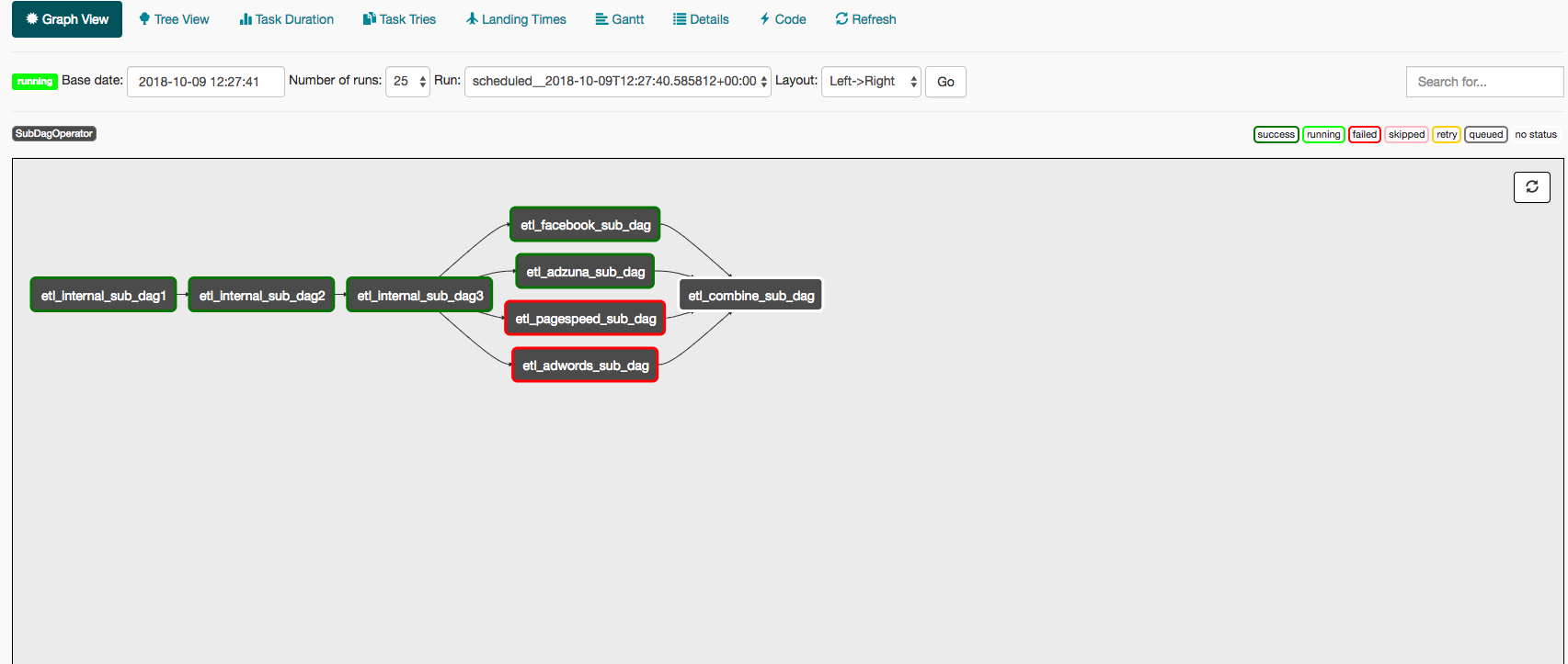 etl_pagespeed_sub_dag >> etl_combine_sub_dag我想要做的是首先运行etl_internal_sub_dag1,然后是etl_internal_sub_dag2,然后是etl_internal_sub_dag3。当etl_internal_sub_dag3完成后,我希望etl_adzuna_sub_dag、etl_adwords_sub_dag、etl_facebook_sub_dag和etl_pagespeed_sub_dag并行运行。最后,当最后四个脚本完成后,我希望运行etl_combine_sub_dag。