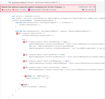 现在,有一天,我转到声纳报告进行静态代码审查和性能改进。在规则部分,我发现我的方法的认知复杂性很高。