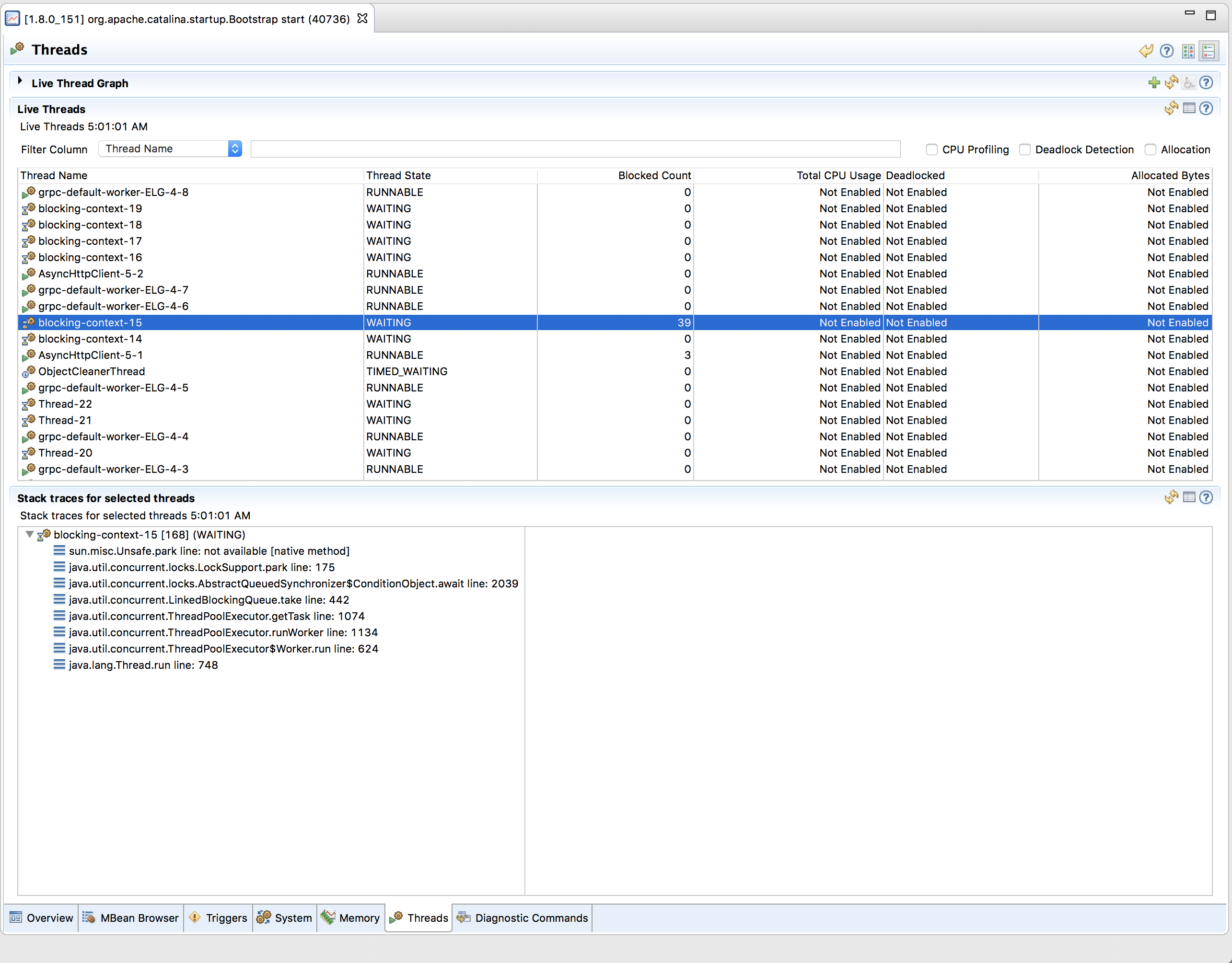 JDK与jconsole和jmc一起出现。您可以使用它们查看线程的使用情况。你可以看到,
