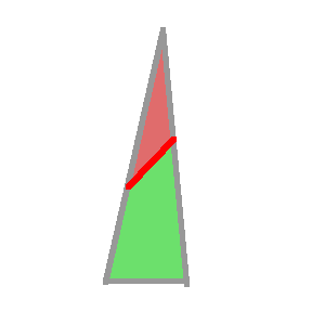 }然后将这些顶点转换成两个三角形(以表示一个四角)。下面的代码。形成了绿色的区域。