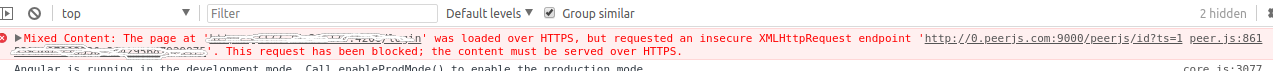 混合内容:在'https://localhost:4200‘处的页面是通过HTTPS加载的,但是请求一个不安全的XMLHttpRequest端点'http://0.peerjs.com:9000/peerjs/id?ts=xyz’。此请求已被阻止;内容必须通过HTTPS送达。