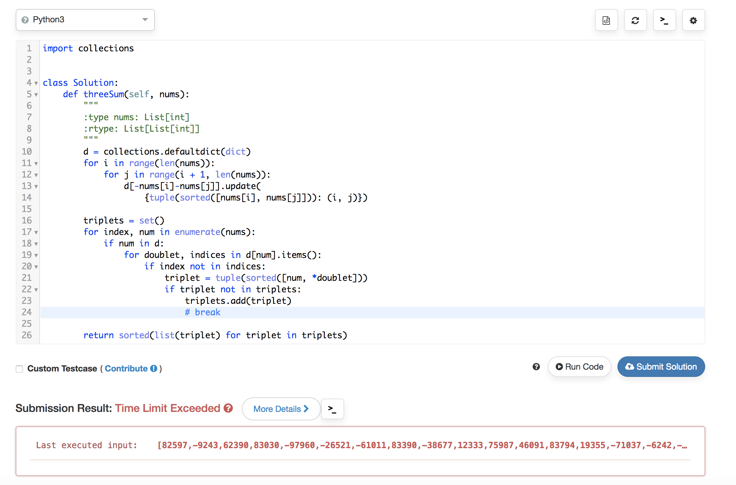 我正在试图解决3和在LeetCode上的问题。我想出了以下解决方案: