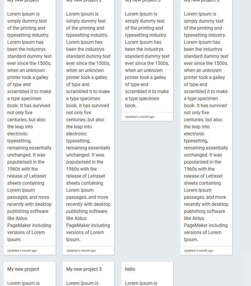 <div class="card card-content">It is a long established fact that a reader will be distracted by the readable content of a page when looking at its layout. </div>