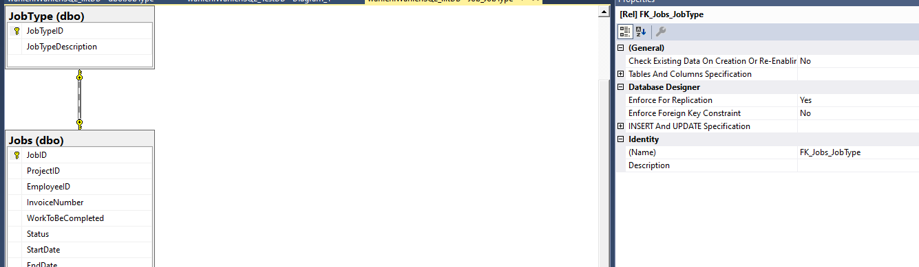 创建一个新的数据库关系图并添加两个表。右键单击它们之间的连接线,选择属性。其中写着“执行外键约束”,将其更改为“否”。这为我解决了这个问题.