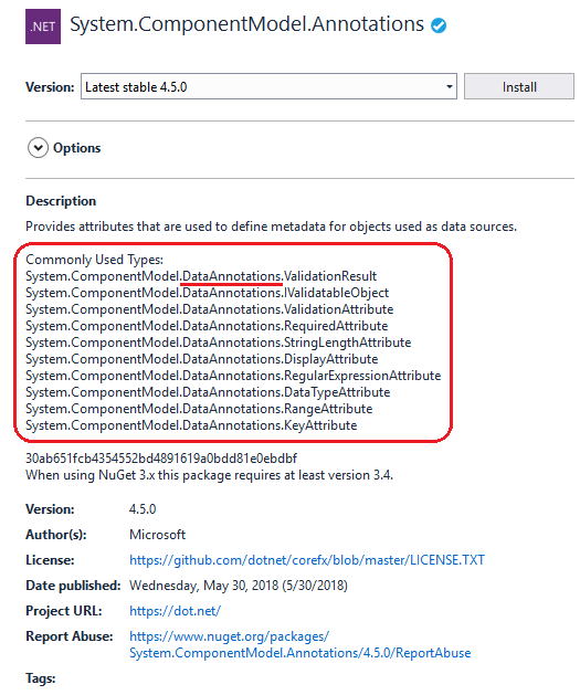 首先,您可以注意到关于包System.ComponentModel.Annotations的描述
