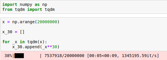 我使用tqdm来跟踪python中的for循环的进度。