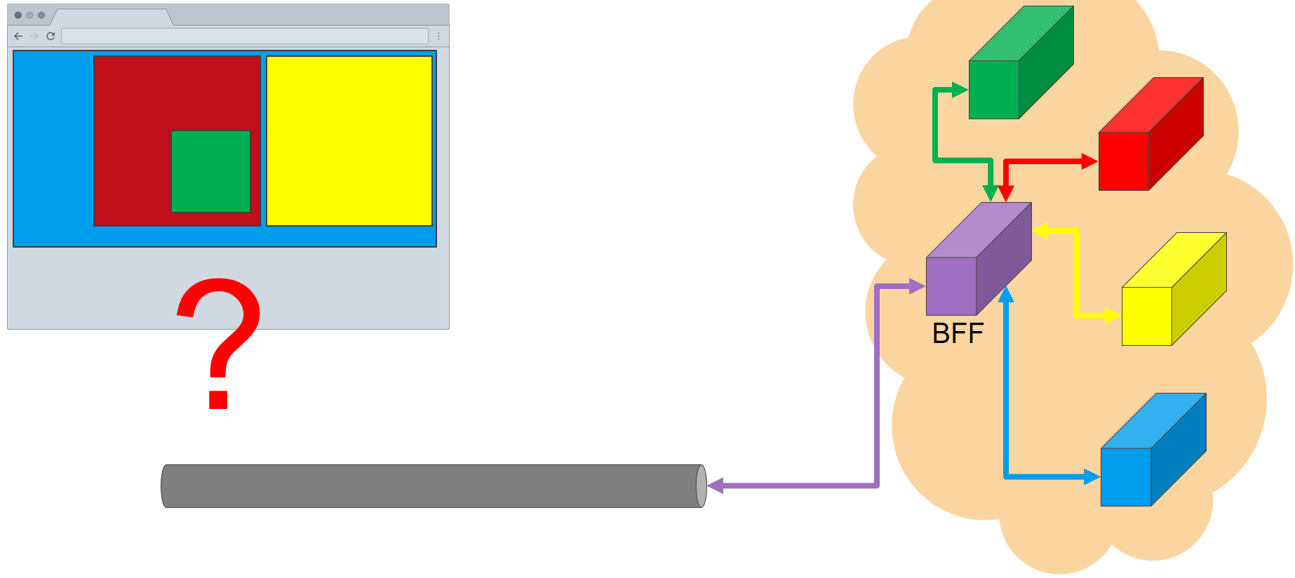 对于后端,我非常希望采用BFF模式不仅仅是山姆·纽曼所描述的可以满足我们的需求。然后,上面草图的右半部分(后端)看起来类似于这样: