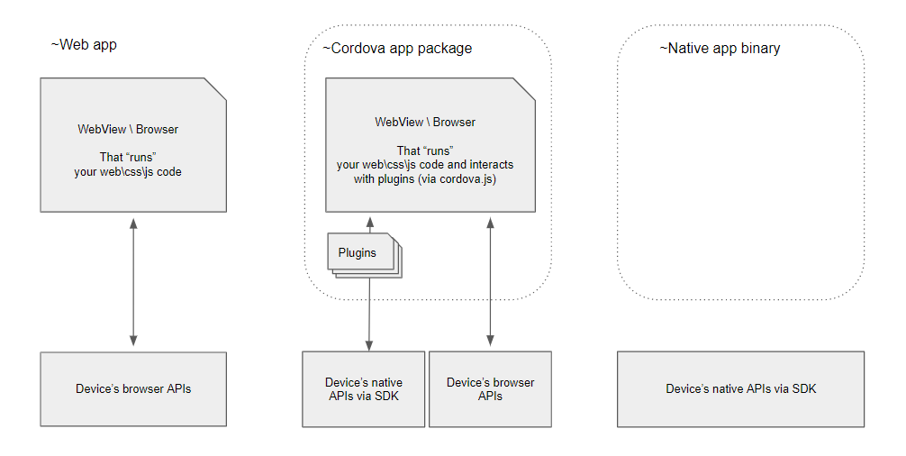 但两者都使用JavaScript与HTML和CSS,都支持离线支持,我可以访问本机功能,如相机和本地存储。