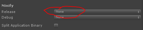 我在Player设置的发布设置中将minify模式更改为"none“,它正常工作