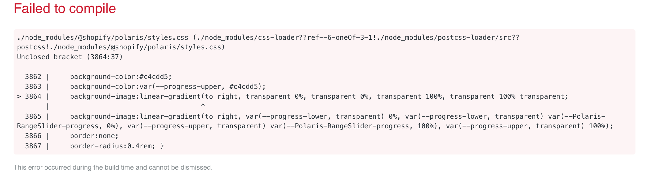 当我import "@shopify/polaris/styles.css";时,我得到一个编译错误