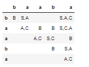 DP_table[i][j] = lhs if not DP_table[i][j] else DP_table[i][j] + ',' + lhs