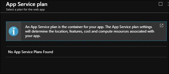 我试图改变Azure应用程序服务计划,我的一个Azure应用程序服务和以下是我得到的。它无法搜索我刚才创建的应用程序服务计划。
