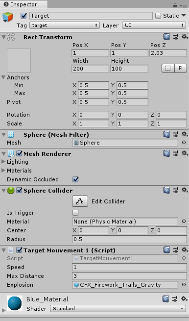 }爆炸是由检验员设置的GameObject类型的公共变量。我把粒子系统的物体放在那里。