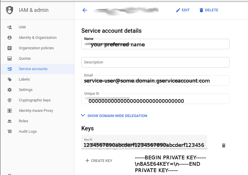 "private_key": "-----BEGIN PRIVATE KEY-----\nBASE64KEY=\n-----END PRIVATE KEY-----\n",