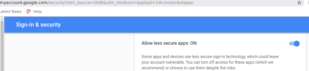 除了代码之外,此步骤还专门针对Gmail,在Gmail中,您需要启用设置才能发送邮件。Account 设置页面,请确保启用以下功能: