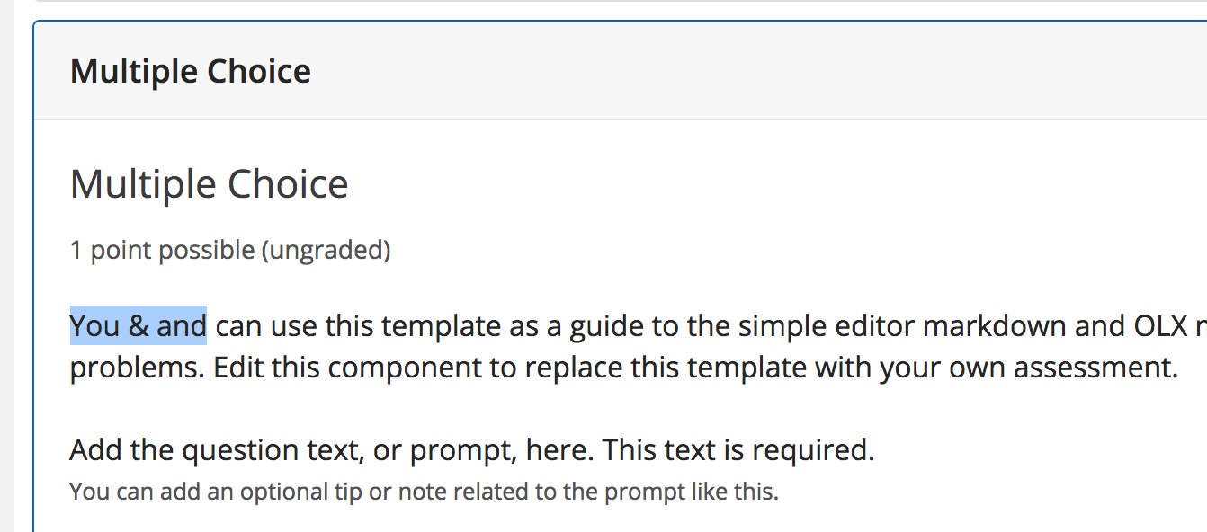 目前,我正在编写open edX,并且在上传“多重选择”中的(&,<,>)数学符号等内容时遇到了一些问题。有什么解决办法吗。