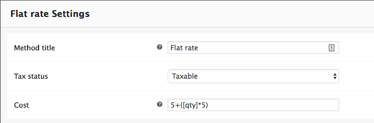 5+([qty]*5)”船运区,请使用:因此,第一个项目将在10 (5+5),每增加一个项目将增加+5的成本。