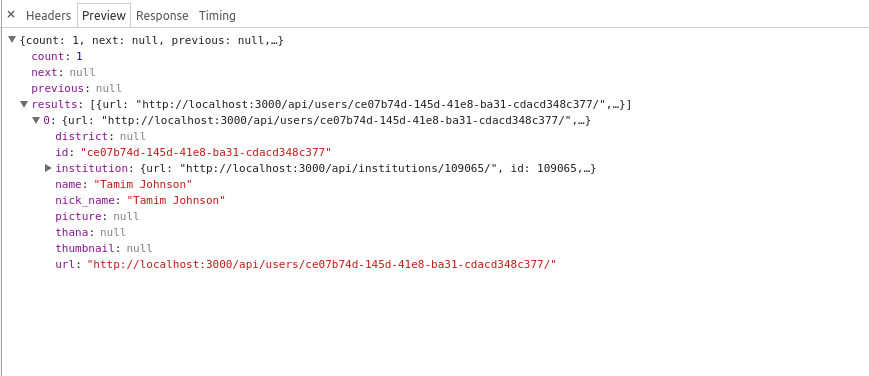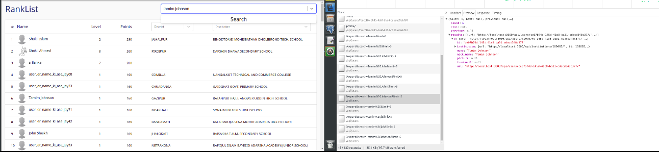 这是名为"tamim“的用户搜索的预览选项卡响应。