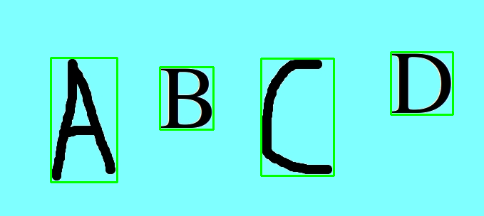 cv2.waitKey(0)首先,我对图像进行阈值化,将其转换为黑色n白色。我得到的字符在白色部分的图像和背景作为黑色。然后,我扩大图像,使字符(白色部分)厚,这将使它很容易找到适当的轮廓。然后,利用查找findContours方法来寻找轮廓。然后,我们需要检查轮廓是否足够大,如果轮廓不够大,则忽略它(因为该轮廓是噪声的)。然后用boundingRect方法求出轮廓的矩形。最后,对检测到的轮廓进行保存和绘制。